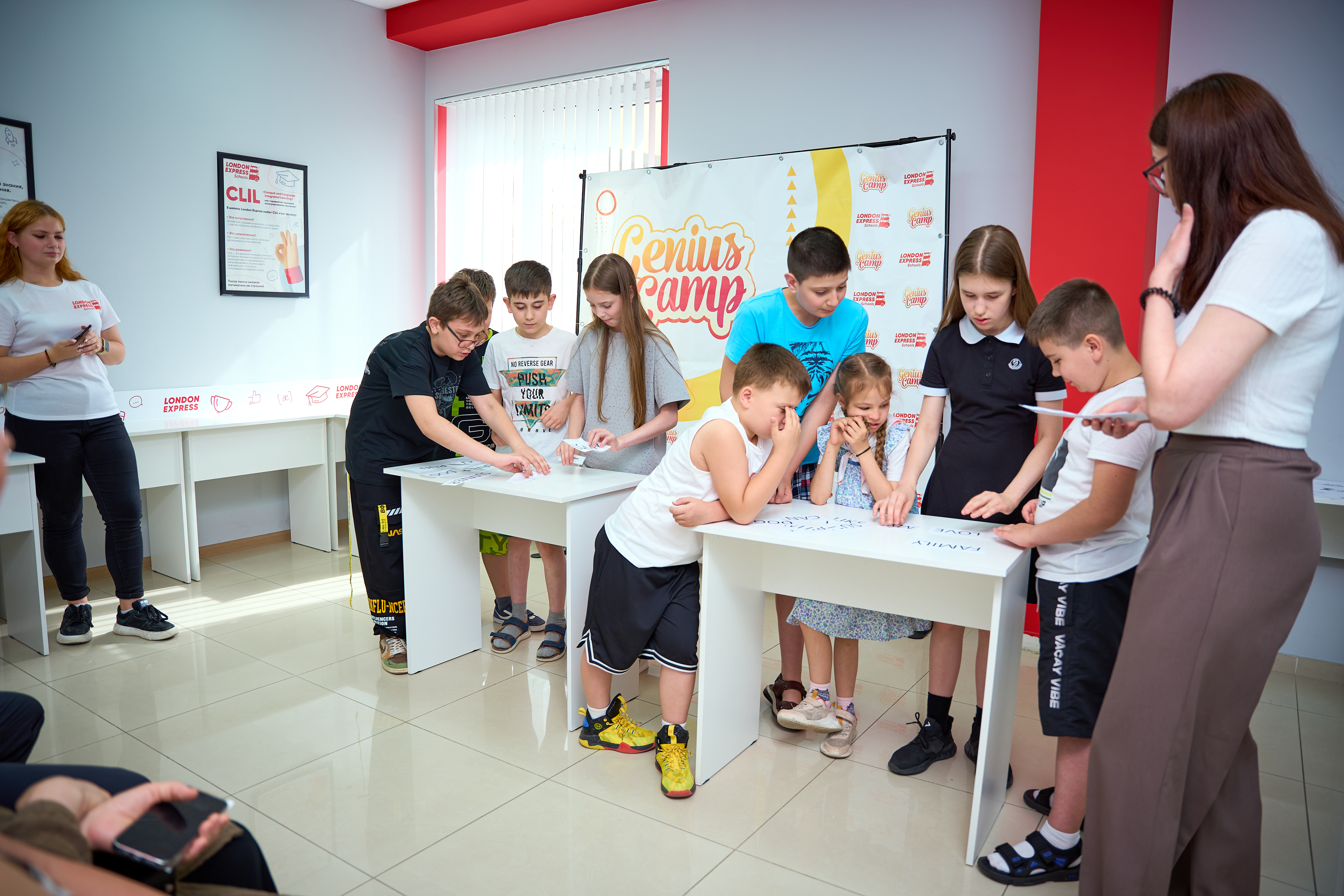 ОСТОРОЖНО! После Genius Camp у детей заметно увеличивается любовь к изучению английского. Погружение в языковую среду в течение двух недель, дружеская обстановка и дух приключений помогают юным гениям запомнить десятки новых слов и конструкций, развить навыки общения, научиться выражать свои мысли на английском языке в разных жизненных ситуациях. А фотосъёмка в течение всей смены позволит сохранить в памяти яркие моменты.